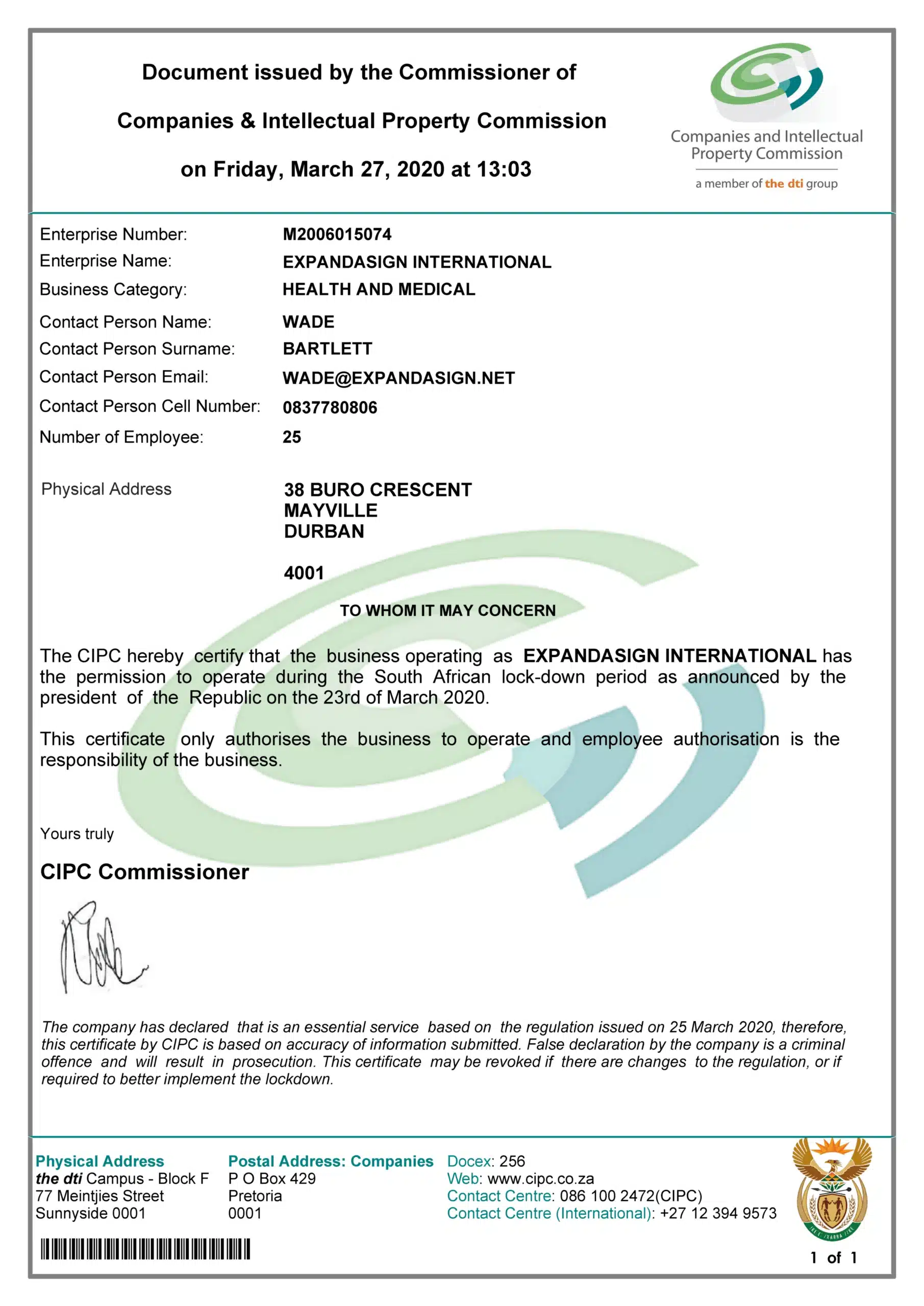 We applied and have been granted permission to operate as an essential service. Our factory is up and running and ready to produce your orders.